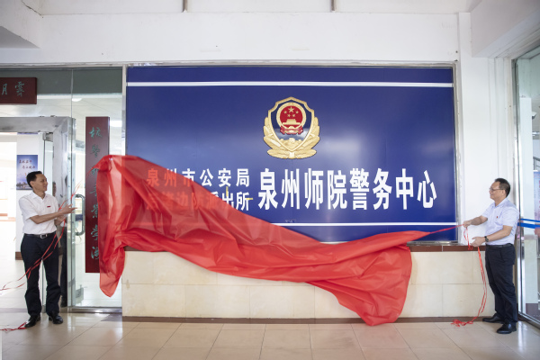 林锦明、朱世泽共同为泉州市公安局后渚边防派出所泉州师范学院警务中心揭牌。