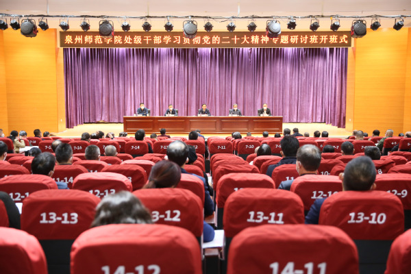 12月22日,我校举行处级干部学习贯彻党的二十大精神专题研讨班开班式。福建省教育系统学习贯彻党的二十大精神领导干部宣讲团成员、泉州市教育系统学习宣传贯彻党的二十大精神宣讲团成员、校党委书记朱世泽教授作主题宣讲报告暨开班式讲话。校党委副书记、校长屈广清主持。校领导林伟、陈亚兵、夏侯建兵出席开班式。
