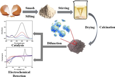 图2 鸡蛋壳粉合成CaCO3/Au双功能纳米材料用于对硝基苯的检测和催化