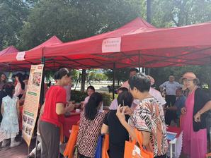 活动于上午8:30正式启动,持续至12:00结束。现场设置了婚育政策咨询、健康义诊、科普宣传等多个功能区,吸引众多居民参与。大学生志愿者们分工明确,各司其职:有的在入口处协助居民排队登记,耐心解答疑问;有的穿梭于不同区域,引导人流、维持现场秩序;还有的负责传递宣传材料、医疗物品,协助医生及社区工作人员提高服务效率。尽管天气炎热,志愿者们始终面带微笑,以饱满的热情投入服务,展现了当代青年良好的精神风貌。