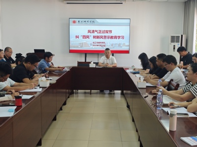 为进一步增强全体教职工的纪律意识和规矩意识,营造崇廉尚俭、风清气正的节日氛围,9月25日,化工与材料学院召开全体教职工大会,组织开展“风清气正过‘双节’,纠‘四风’树新风”警示教育学习。学院党政领导班子、全体教职工参加学习。