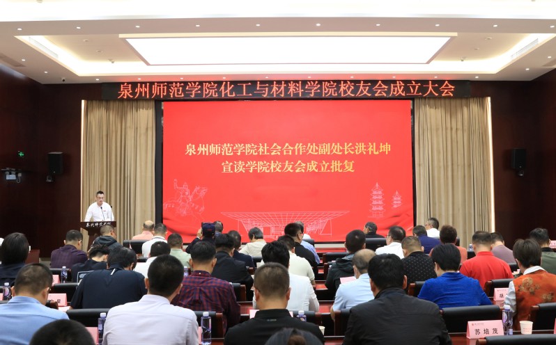 洪礼坤宣读《关于同意成立泉州师范学院化工与材料学院校友会的批复》。