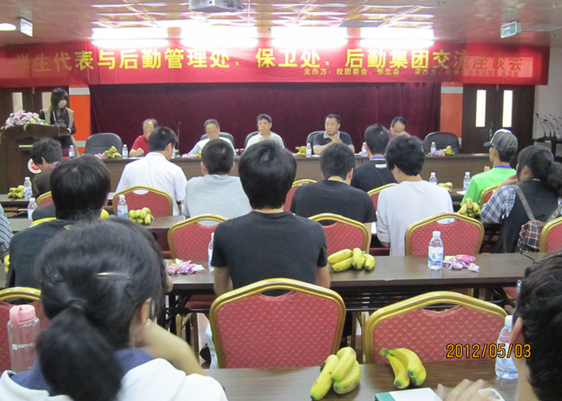 5月3日下午,后勤处、后勤集团、保卫处与学生代表交流座谈会在行政楼二楼会议室举行。后勤管理处王振裕处长,副处长谢继存,后勤集团饮食、物业管理中心负责人,保卫处代表等老师和校学生会、各二级学院的学生代表参加了座谈会。