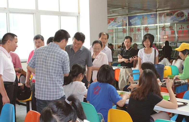 现场汇报会后,检查组一行还深入我校食堂现场检查指导,对我校学生食堂管理工作中领导高度重视、监管到位等给予好评;对我校在落实贯彻文件精神和稳定学生食堂饭菜价格方面的工作给予肯定。同时,检查组还对学校食堂管理工作存在的问题提出建议。