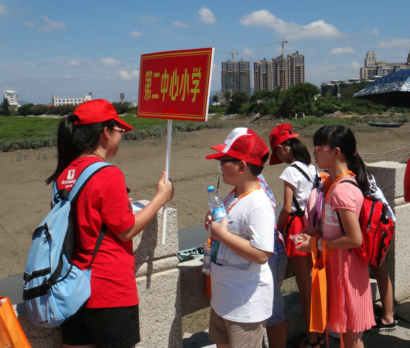 2015年8月20日,为了让世人知道鲎、认识鲎、保护鲎——我院暑期社会实践“青鸟鱼跃”队暨“市环保志愿服务总队泉州师院分队”来到了西湖公园,为本次“美丽七夕,两岸守‘鲎’环保科普系列活动”助一臂之力。此次活动由泉州湿地学会主办。在西湖公园中,来自泉州各地的小朋友们在实践队队员们的带领下进行趣味闯关游戏,一边玩着小游戏,一边在实践队队员们的带领下了解鲎、认识鲎。随后,实践队队员们马不停蹄地赶往洛阳桥为鲤城区的小朋友讲解湿地知识,在小朋友心中埋下了一颗保护湿地、保护红树林的种子。”通过本次活动让更多的人加入到守护中国鲎和保护湿地的队伍当中,“爱鲎守鲎 保护湿地 你我先行”。