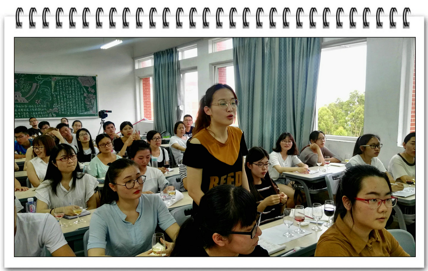 王灿辉总经理从葡萄酒的酿造过程、新旧世界葡萄酒的区别、葡萄酒的品鉴方法等方面介绍了葡萄酒的文化和历史,重点介绍了葡萄酒包装要求、葡萄酒标签说明及相关法规等内容。在授课中安排了动手实践环节,王灿辉总经理特地带来了三款不同风格的进口葡萄酒,现场指导同学们从听、看、闻、品等感官系统对红葡萄酒及白葡萄酒的色、香、味进行全面品鉴及解析,深受同学们喜爱。授课结束之际,还进行师生答问环节,学生提问踊跃。整个课堂持续了近4个小时,授课过程始终保持风趣、幽默、生动、欢快。此次课程是海洋与食品学院食品专业课程《食品包装学》、《食品标准与法规》在校企合作开设课程方面的大胆尝试,可为学院校企合作课程的开设提供有力的借鉴。