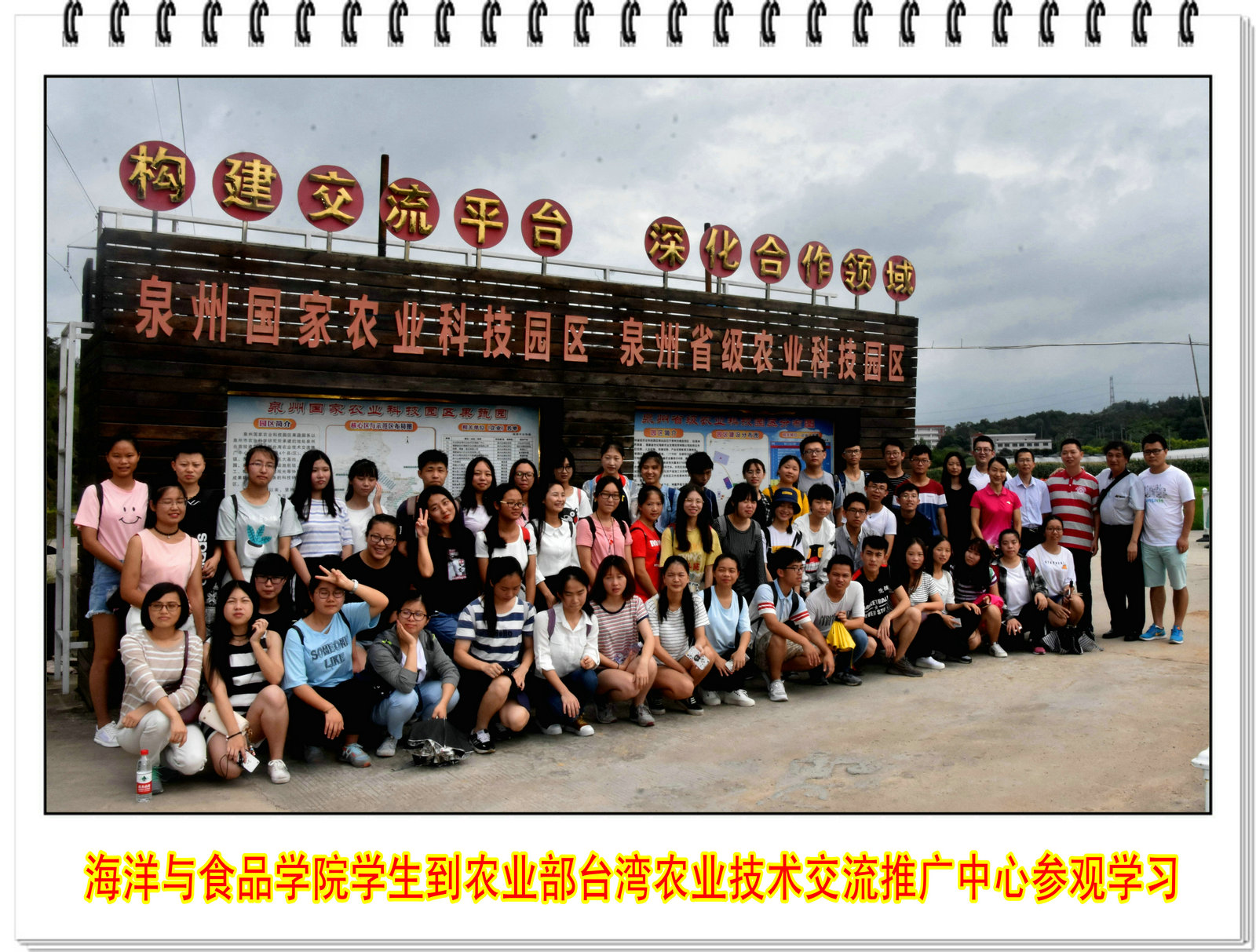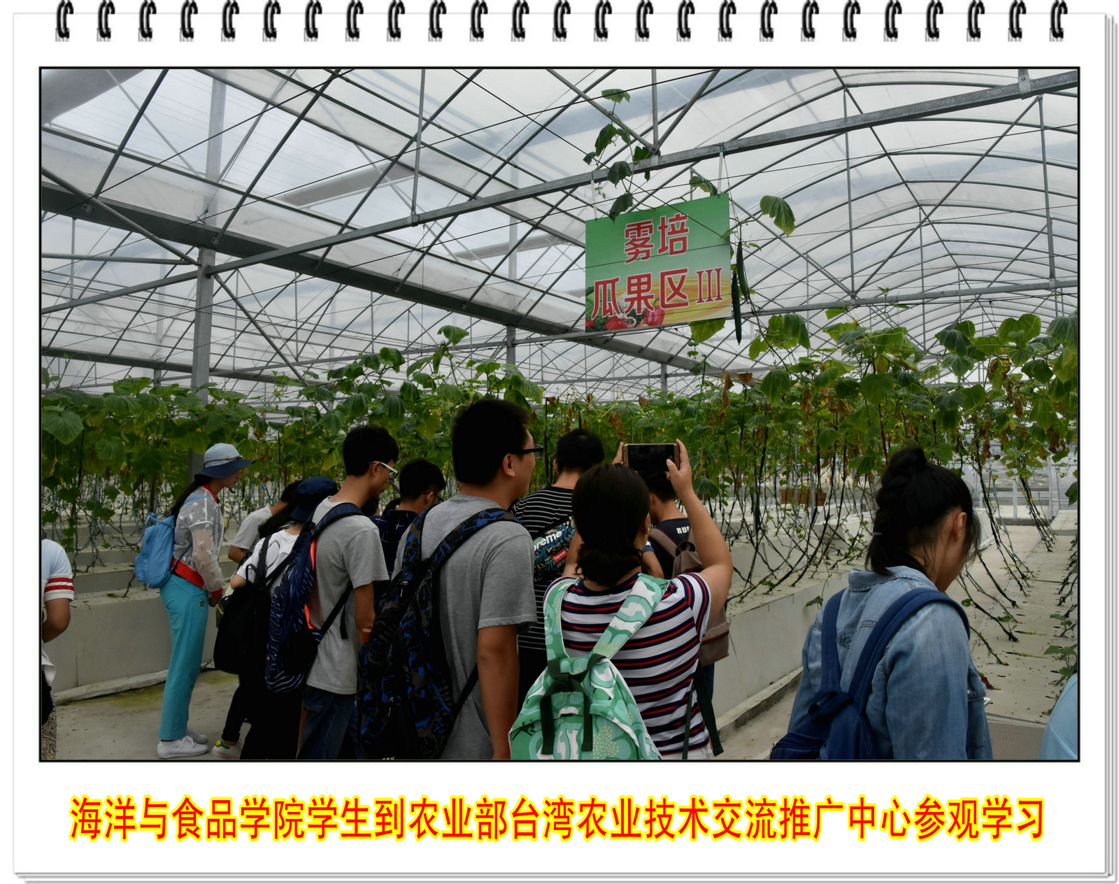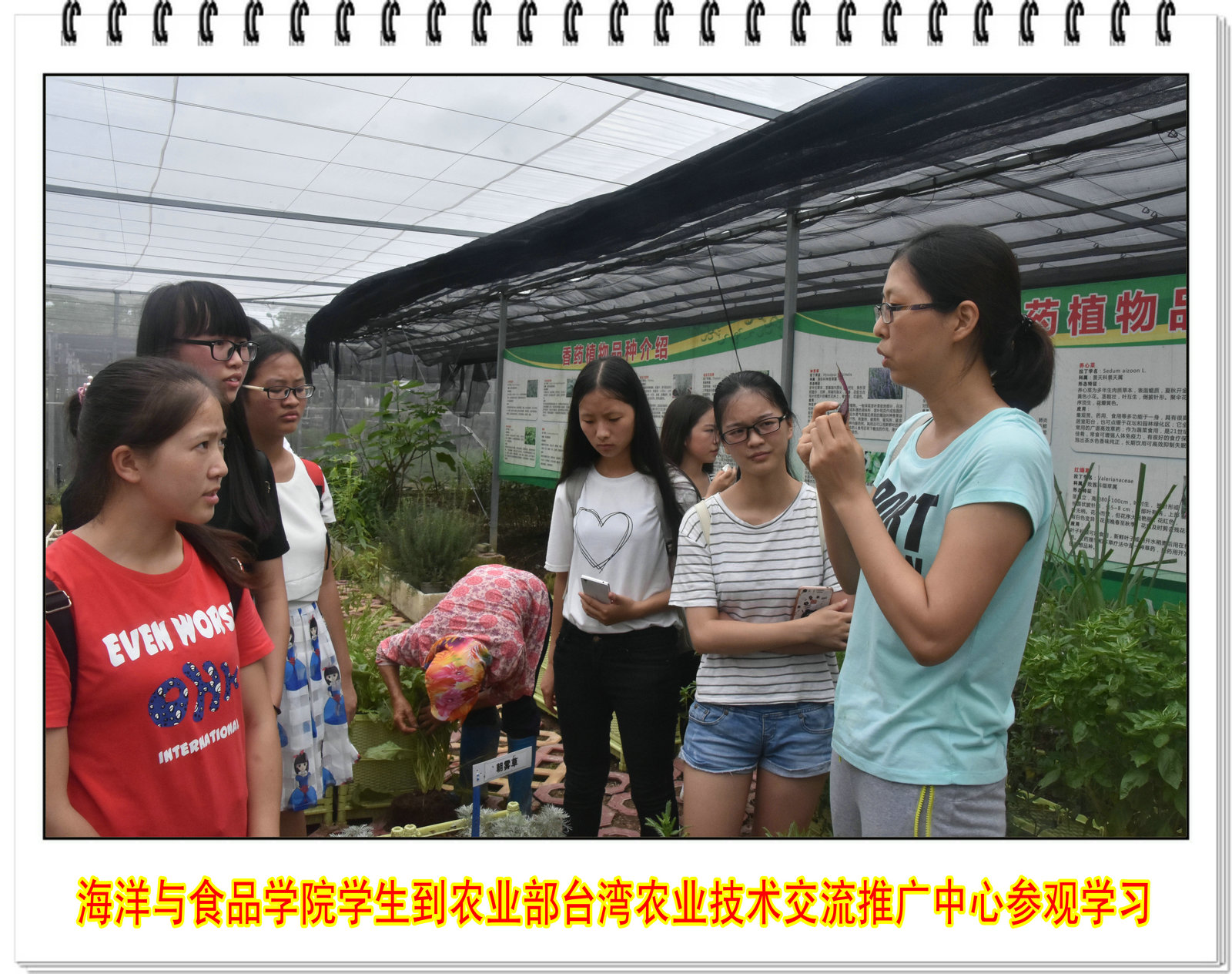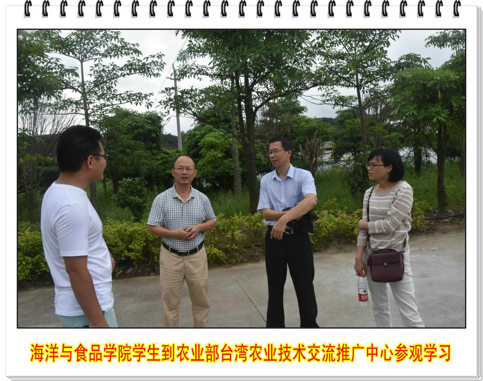 台湾农业技术交流推广中心领导庄卫东所长对海洋与食品学院一行表示热烈欢迎。中心主任郑金水副研究员兴致勃勃地向同学们介绍了中心近年来的发展情况以及各种成就,并亲自带领同学们参观了台湾果树引种圃、台湾香草引种圃、台湾园艺作物设施栽培示范园、金花茶种植园等海峡两岸农业合作项目区以及福建集盛鸽业有限公司,为同学们详细讲解了基地的情况。