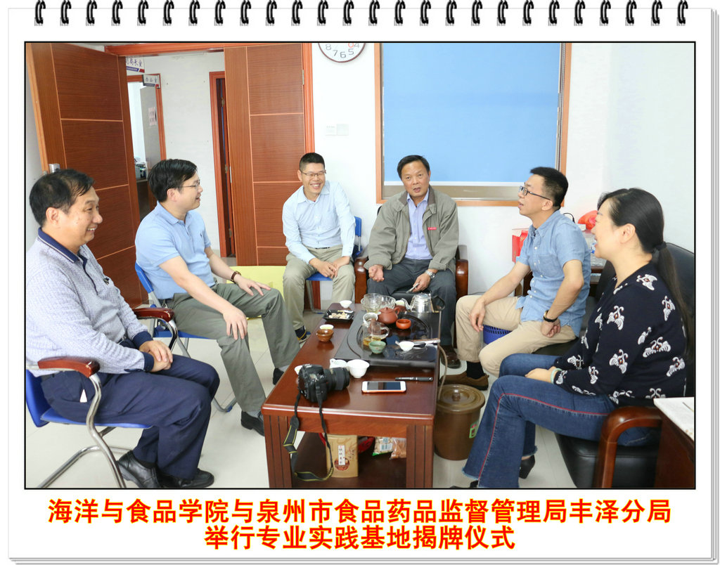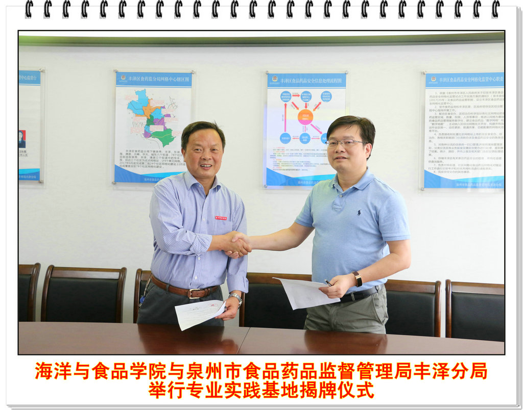 座谈会上,校企双方就人才培养、专业实习等合作领域与方式进行了深入交流、沟通。在轻松、快乐的交流过程后,海洋与食品学院袁建军院长和康招传局长正式签订了泉州师范学院专业实践基地协议书,并共同为专业实践基地揭牌。