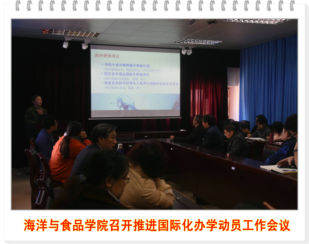 1月10日下午,海洋与食品学院召开推进国际化办学动员工作会议。学院全体老师参加了会议,会议由袁建军院长主持。