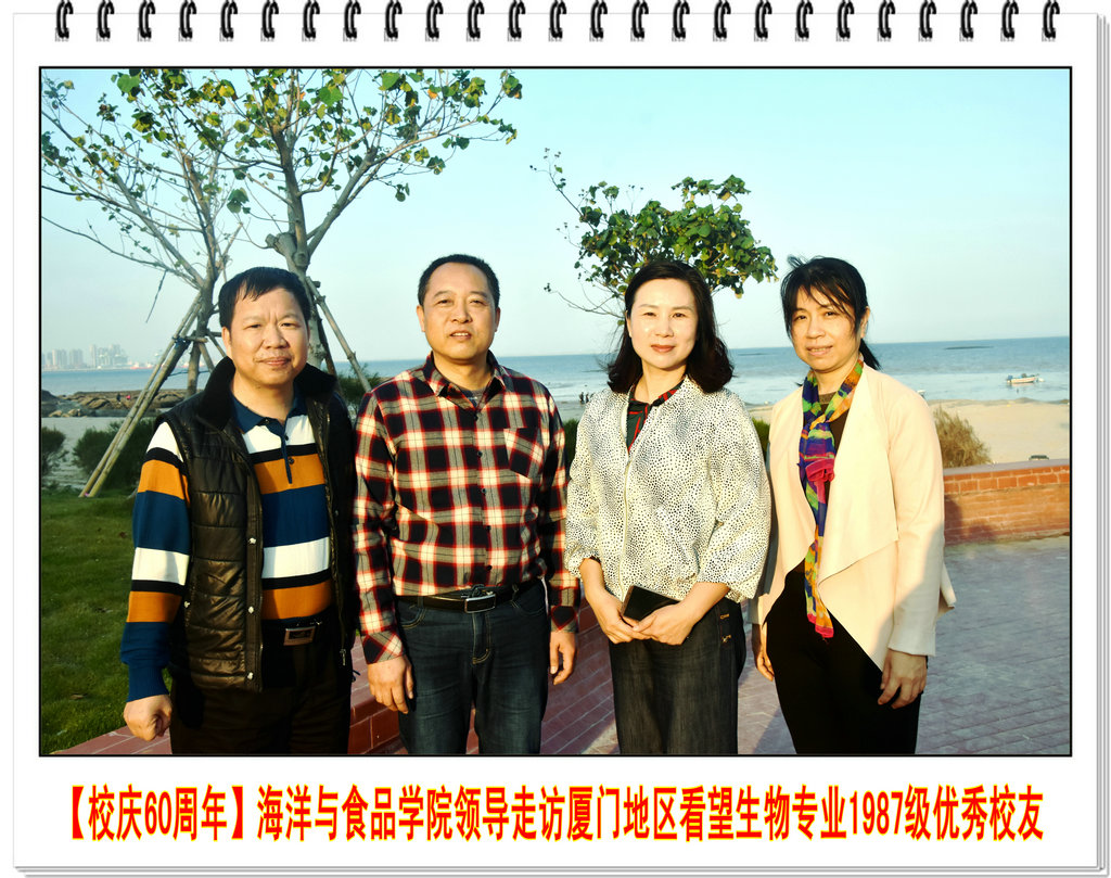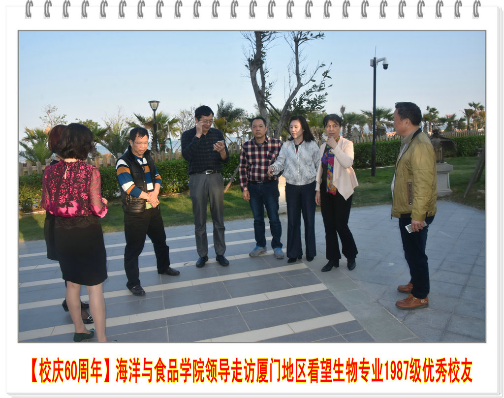 2018年3月31日,海洋与食品学院院长袁建军教授、书记蔡英卿教授与学校科研处处长戴聪杰教授赴厦门市走访看望生物专业1987级优秀校友、厦门市教育事务受理中心主任蒋思彬、厦门湖里区金尚中学叶琳、同安区洪塘中学庄建成、翔安区刘五店中学陈国民。袁建军一行与校友进行了热烈的交流和对接,并希望在60周年校庆即将到来之际,搭建好校友与母校畅通的交流合作渠道。
