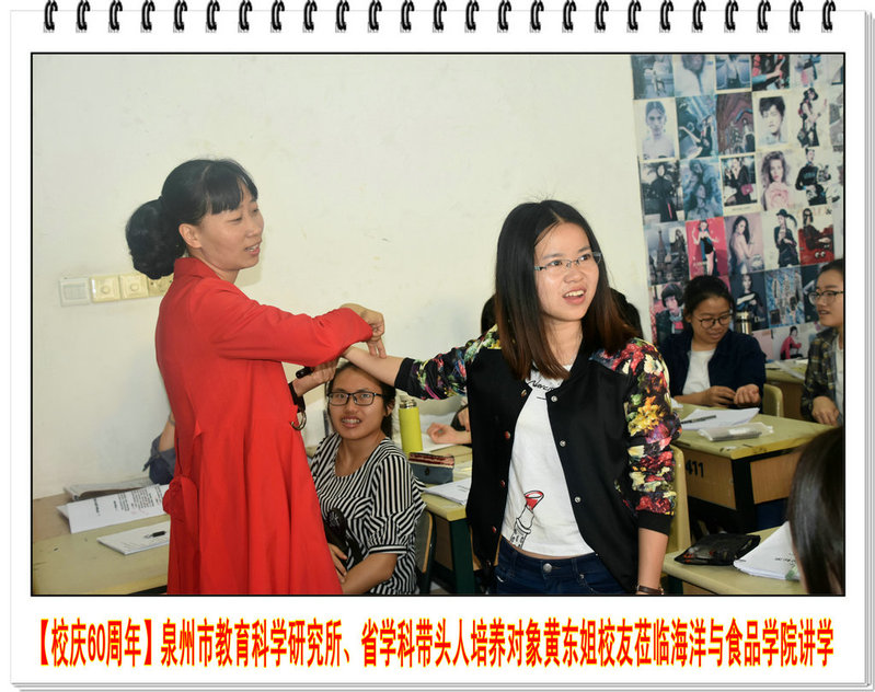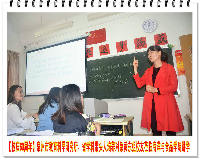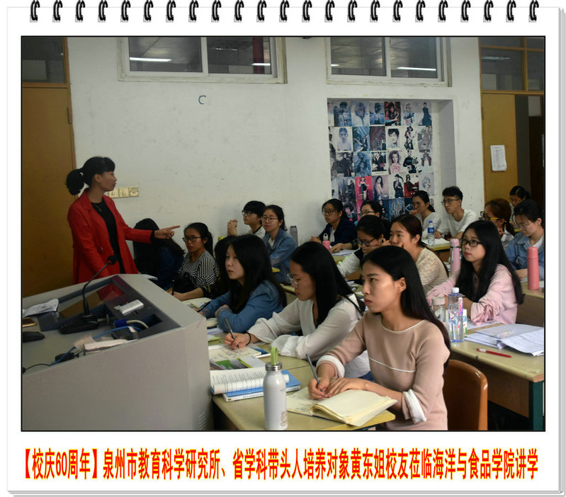 2018年4月26日上午,福建省学科带头人培养对象、泉州市教育科学研究所教研员、中学高级教师黄东姐校友莅临海洋与食品学院为2015级生物科学专业学生讲学授课,主题为《中学生物学教学策略及案例分析》。