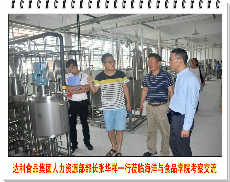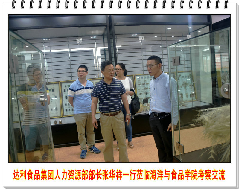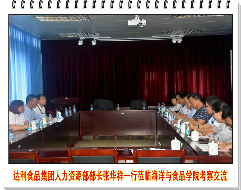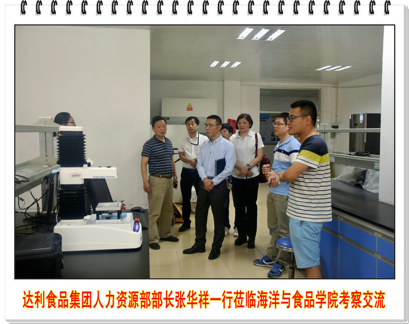 会上,袁建军院长首先对张部长一行的到来表示欢迎,简要介绍了海洋与食品学院的师资、教学、科研以及人才培养情况。王锋处长介绍了学校应用型学科布局和规划。张部长对我校在师资建设、人才培养、科研投入以及服务地方经济等方面采取的举措和取得的成效表示赞赏。双方就冠名举办达利班、共建专业实践基地(每年选派骨干教师带队实习生到达利进行生产实习的人才交流长期互动机制)、校企人才互聘、高层次人才双聘以及联合申报产学项目等五个方面达成了初步合作意向。会后,张部长一行还参观了海洋与食品学院中试生产线和科研平台。(林娈)