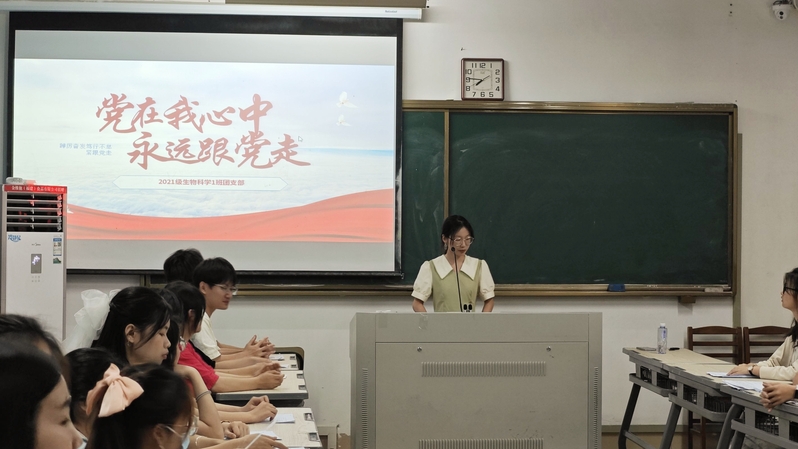 习近平总书记在党的二十大报告中寄语广大青年“坚定不移听党话、跟党走,怀抱梦想又脚踏实地,敢想敢为又善作善成,立志做有理想、敢担当、能吃苦、肯奋斗的新时代好青年,让青春在全面建设社会主义现代化国家的火热实践中绽放绚丽之花。”立足新征程,2021级生物科学1班团支部将以加强思想引领为核心,以加强组织建设为重点,以提升综合素质为关键,踔厉奋发,勇毅前行,以接力奋斗的历史主动诠释中国式现代化的青春担当,坚定不移在中国式现代化新征程上展现青春新作为。