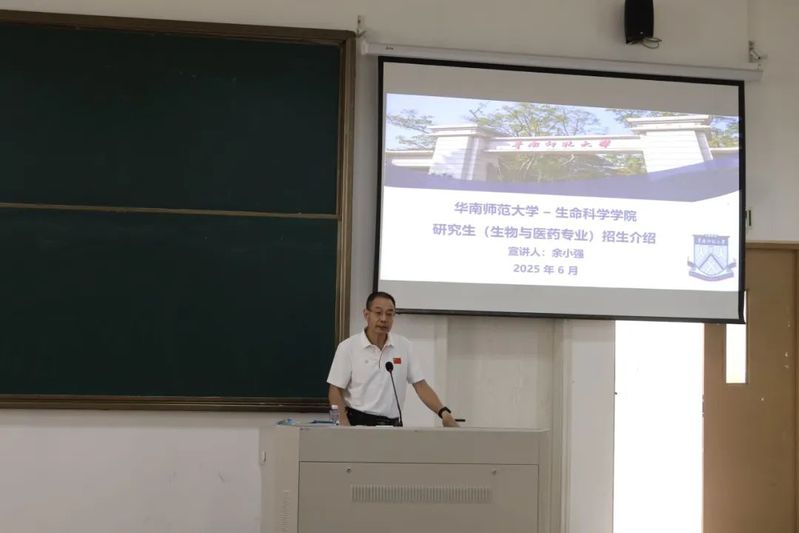 宣讲会上,余小强教授全面解读了华南师范大学2025年研究生招生政策。他详细介绍了该校雄厚的师资力量、学科带头人的研究成果,系统剖析了生物与医药专业的课程体系、培养模式及生物工程技术创新、医药研发前沿等方向特色。结合近年报考数据、录取比例和毕业生发展情况,余教授深入分析了考研形势与行业前景,并重点阐述了该专业在大健康产业、生物医药企业等领域的广阔空间。针对合成生物学、精准医疗等科研前沿,他通过案例展示了学科发展潜力,为学子明确目标、制定规划提供了权威指导。