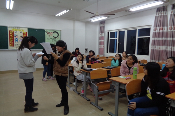本报讯(记者 叶竹荣)12月14日晚,我院在文科楼开展了以“‘三心’道德讲堂给力社会主义核心价值观”为题的主题班会评比活动。其中,学前教育专业14级(2)班凭借《拥抱真善美,传播正能量》一题,以总分8.00夺得本次班会评比活动桂冠。教育技术学专业13级以及应用心理学专业14级则分别以7.90、7.81总分位居第二、第三。