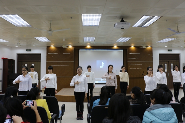 首先,特殊教育专业学生以手语表演《时间都去哪了》拉开了本次道德讲堂的序幕。紧接着,语言团的两名成员为大家朗诵了一段新道德经典,让大家体会到老子对“善”的理解。之后,王东育先生用一段他十年来志愿服务经历的纪录片完美诠释了志愿服务的无私奉献精神。影片结束后,王东育先生与大家分享了志愿服务的意义与价值,并且鼓励当代大学生应当积极加入志愿者组织,在奉献中锻炼自我,提升自我。他讲述的每一段经历都感动了在座的观众,赢得一阵阵热烈的掌声。