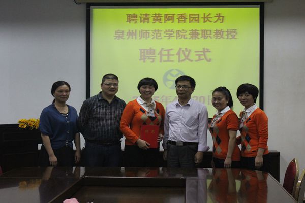 4月20日下午,教育科学学院党政领导、学前教育专业负责人、院办负责人赴教学实践基地分别与丰泽区实验幼儿园园长许秀平、刺桐幼儿园园长黄阿香交流座谈,并代表学校授予两位园长兼职教授聘书。