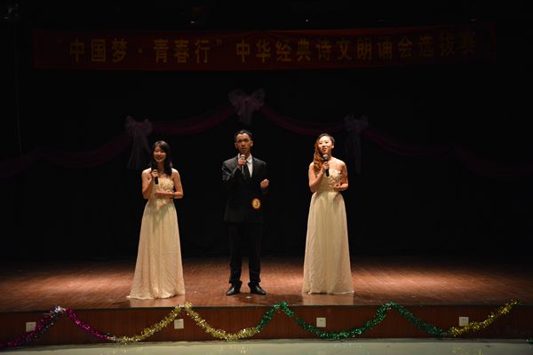 本报讯(记者傅莉雅 刘雨柔)4月23日下午,“中国梦·青春行”中华经典诗文朗诵比赛决赛在朝阳楼呈辉演播厅举行。我院两支参赛队伍分别凭借总分94.7分和92.7分取得了第一名和第四名的好成绩。