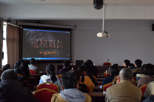 本报讯 日前,我院组织全院党员师生集中观看警示教育片——“巡视利剑”之“利剑高悬”。院党委书记陈一祥发表讲话。
