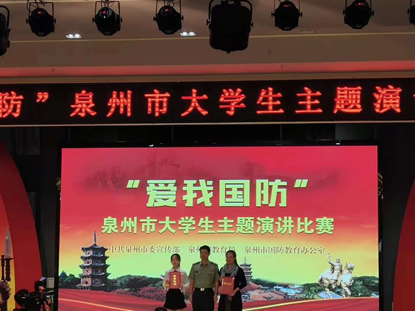 10月12日下午,由泉州市委宣传部、市教育局和市国防教育办公室联合主办的泉州市“爱我国防”大学生主题演讲比赛总决赛在我校特教大楼举行。教育科学学院2016级应用心理学专业李诗敏参加此次比赛并取得决赛一等奖的佳绩。