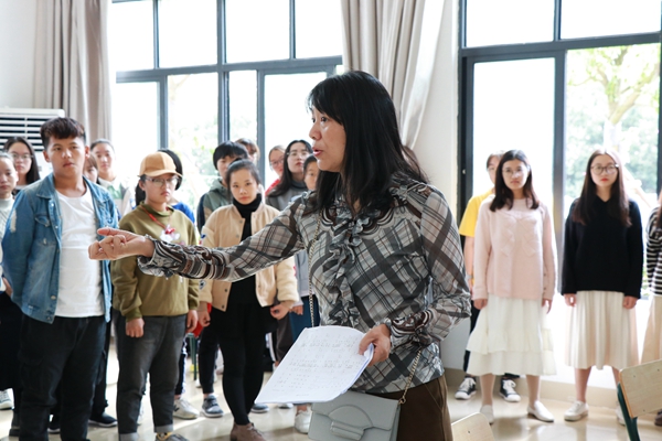同学们根据指挥进行发音 (王竹雨 摄)
