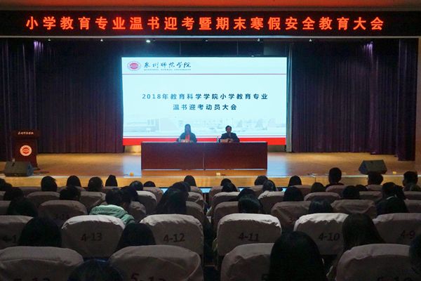 12月23日-28日,教育科学学院各专业分场次召开了温书迎考动员暨期末寒假安全教育大会,学院领导、各专业主任、各专业辅导员出席大会。