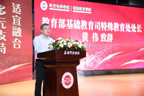 开幕式上,黄伟对此次研讨会的胜利召开表示热烈祝贺,对福建完善特殊教育保障机制、创新发展孤独症儿童教育等予以充分肯定,对泉州师范学院坚持擦亮特殊教育底色和亮色及特殊教育学科专业建设成绩感到高兴,高度赞赏了学校构建“+特殊教育”和“特殊教育+”的办学格局和支持、服务区域特殊教育高质量发展成效。