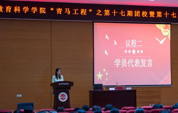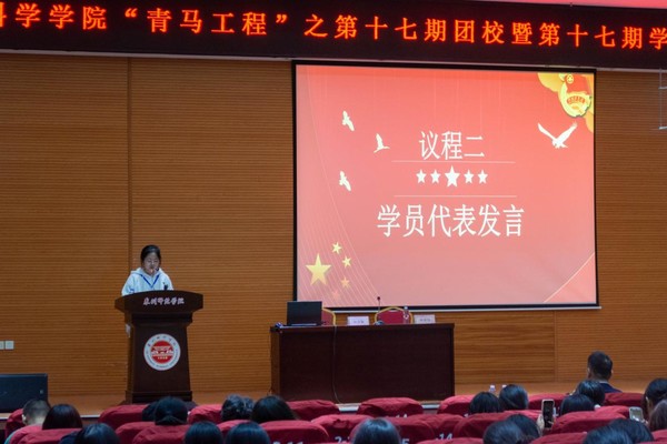 紧接着,学员代表陈欣欣上台发言,在这一活动中为全体新进学生干部提出建议,激励学生干部履行职责,对工作负责、对岗位负责。陈欣欣同学在发言中提及,我们身处一个快速发展的时代,竞争日益激烈,学生干部作为一个充满责任与荣耀的角色,身负重任,作为学生干部,不仅仅需要我们在学业上保持优秀,更应该作为学生榜样在校园生活中发光发热,在此次培训中相互学习、交流经验、共同成长。
