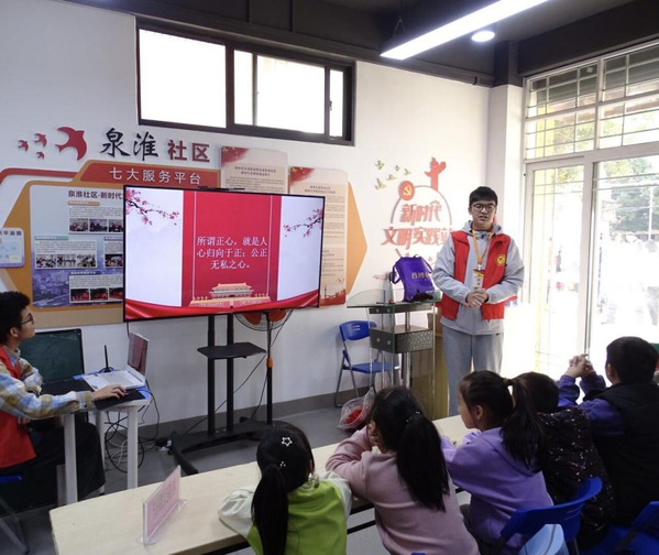 为加强新时代廉洁文化建设,培育清正廉洁的价值导向,进一步倡导廉洁文化,引导社区儿童建立正确的廉洁价值观。2023年12月2日上午,教育科学学院“润育青衿”志愿服务队携手泉淮“党建+”邻里中心、泉淮社区新时代文明实践站开展以“存正心、守正道、养正气”为主题的少儿公益课堂。