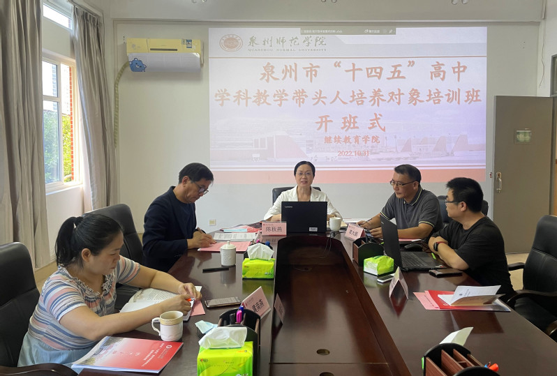 10月31日上午,由泉州市教育局主办、泉州师范学院继续教育学院承办的泉州市“十四五”高中学科教学带头人培养对象培训开班。来自泉州市直学校和各县市区的98名高中学科教学带头人培养对象参加开班式。继续教育处副处长、继续教育学院副院长王宏主持开班式。继续教育处处长、继续教育学院院长陈秋燕出席开班式并致辞。