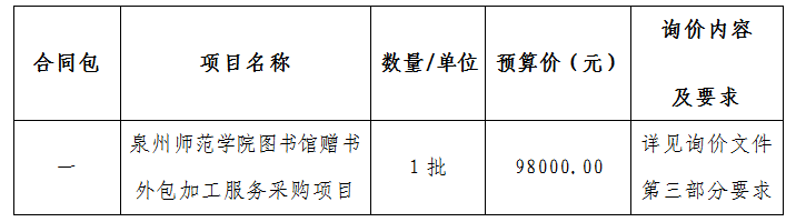 泉州师范学院图书馆 以 询价 的方式对以下项目进行采购,欢迎合格的受邀供应商参加报价(提交密封的投标文件)。