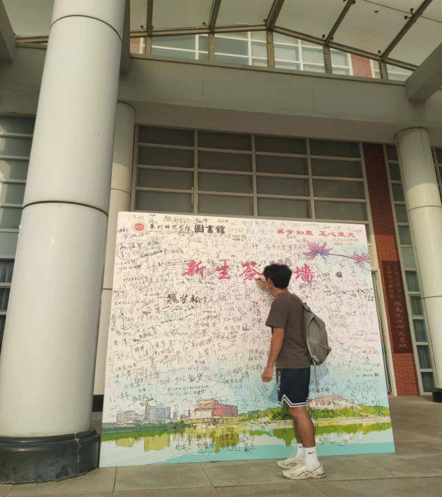 入学伊始,图书馆在门厅布置了“致新生:初识图书馆”图文展,并在大门口设置了签名墙和拍照打卡框,刚入学报到的新生纷纷前来签名和拍照留念,为他们即将开启的大学校园生活留下美好瞬间。