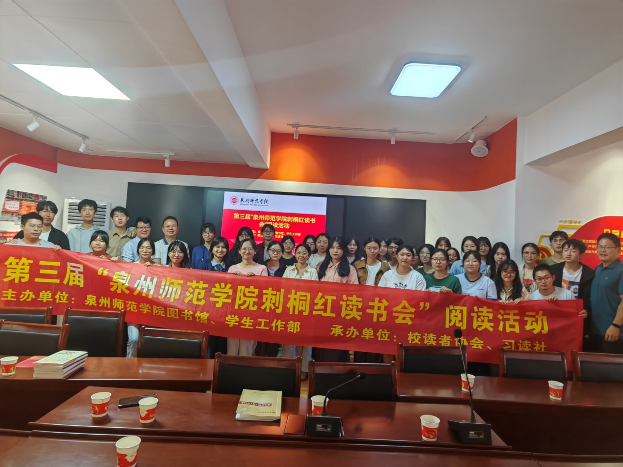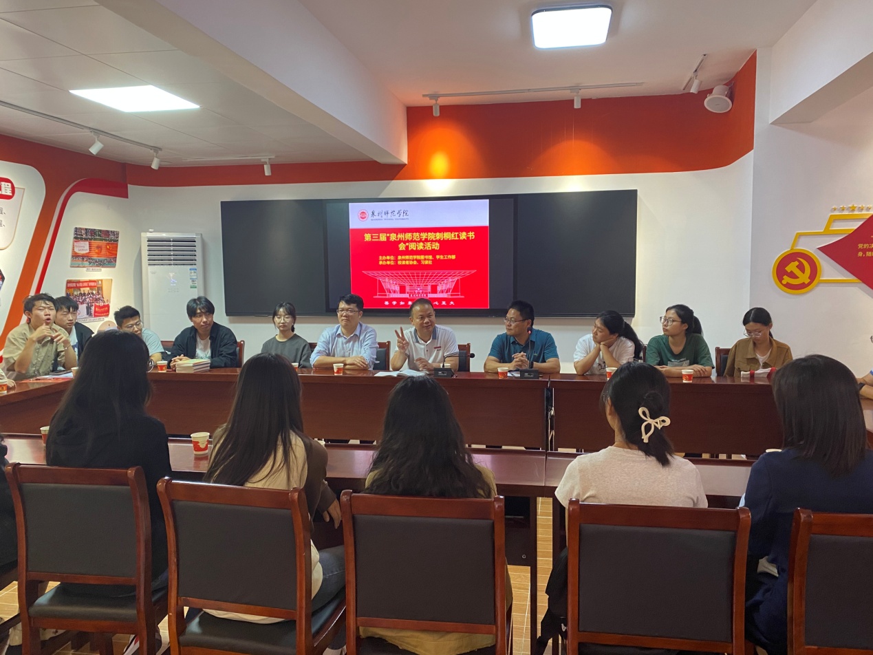 10月26日晚,由图书馆、图书馆党总支、学生工作部主办,校读者协会、习近平新时代中国特色社会主义思想读书社承办的第三届“泉州师范学院刺桐红读书会”阅读活动在学生社区文明实践中心举办。本次活动旨在让同学们在学习专业课的同时,多方面阅读红色经典,全面拓展阅读领域,分享红色经典阅读的心得体会,从而更好地传承、弘扬红色文化。学生工作部副部长尤建军、学生事务管理科科长洪小华、图书馆办公室主任陈钦明参加读书会。活动由图书馆咨询部陈彬强老师主持。