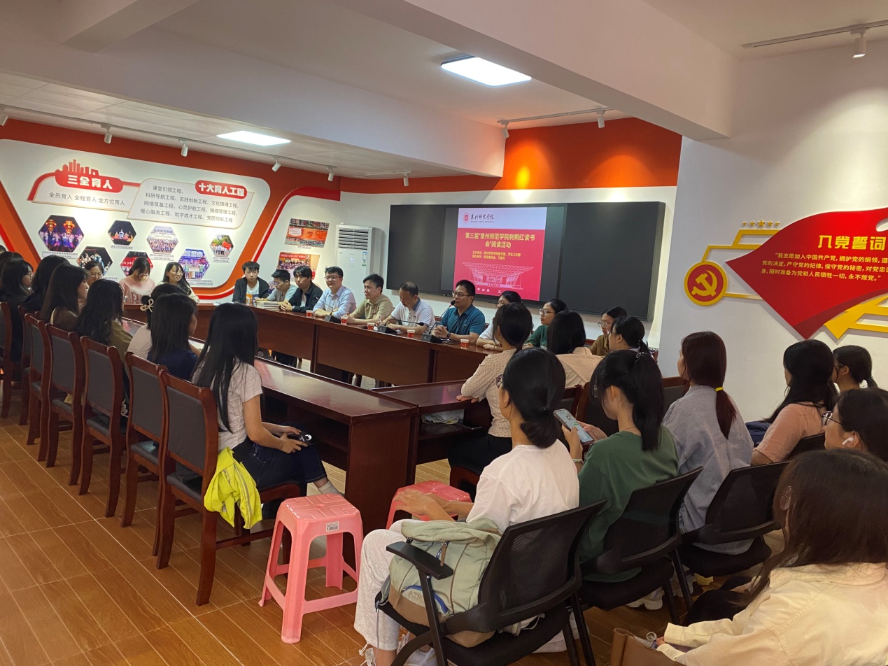 尤建军介绍了学校打造“书香社区”育人新风尚的工作情况,希望同学们做好示范引领,带动广大同学积极行动起来,多读书,读好书,在阅读红色经典中汲取思想伟力、坚定文化自信、激发奋进动力。