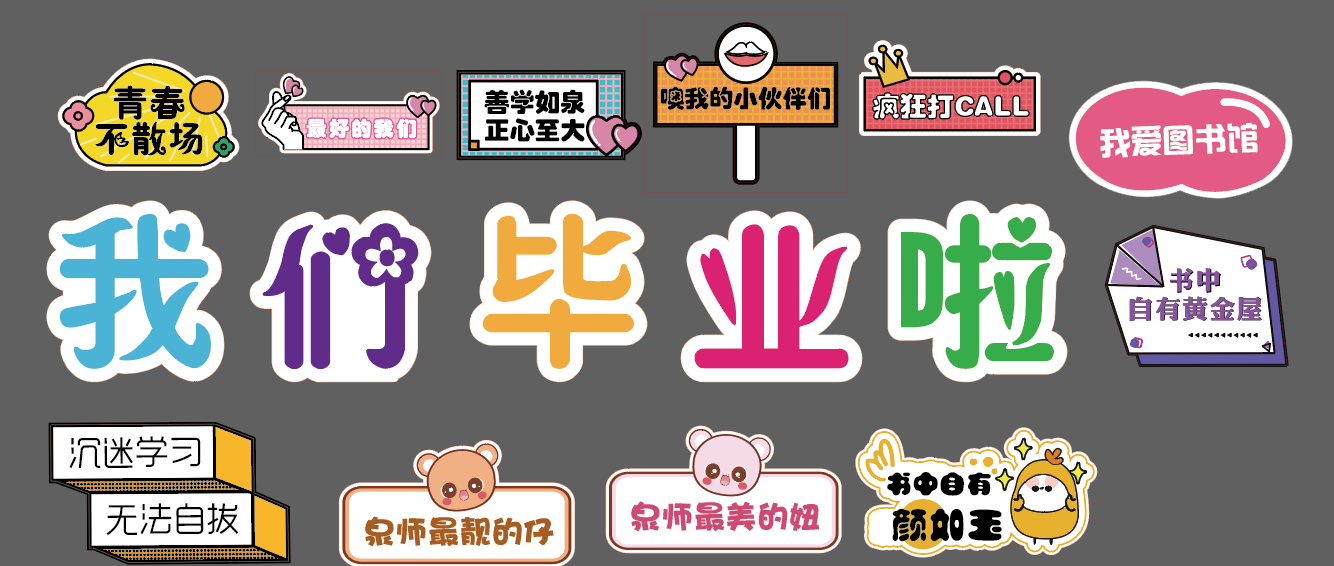 图书馆定制了跟毕业季相关的手举牌,供毕业生拍照使用。使用之前请先找工作人员登记,并在指定时间归还。
