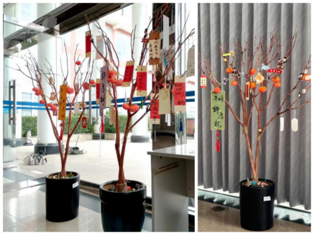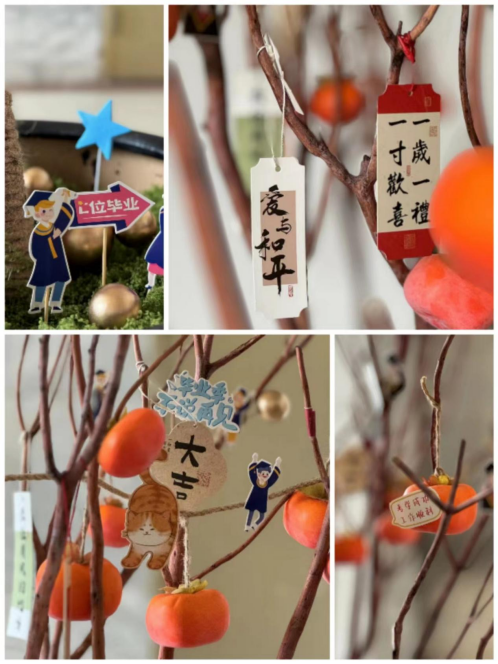 线下留言采用许愿树的形式。图书馆在一楼大厅入口处布置了祝愿毕业生心想“柿”成的“柿子树”,邀请毕业生在“柿子树”上留下寄语与愿望。既可以对自己说,也可以对老师说,或者对学弟学妹说……