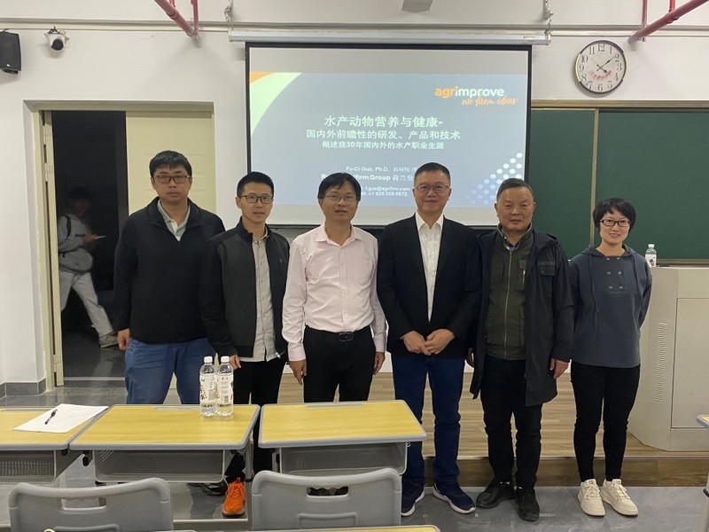 郭博士回顾了30年在多个营养健康及医药领域跨国公司从事水产动物疫苗、特殊营养素、抗氧化剂、免疫增强剂、抗生素替代品等动物保健产品研发和市场开拓的经历和成功经验,介绍了国内外动保领域前沿产品、技术和国际同行企业产品和技术发展的趋势,以及行业存在的共性关键技术问题。在互动交流中,郭博士认真解答了师生提出的问题,鼓励学生坚定专业方向、做好实验基础、紧跟国际趋势,争取在水产养殖领域有所建树。