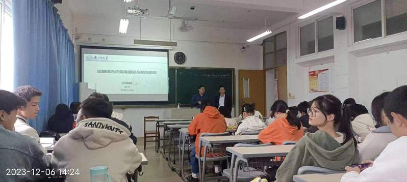 刘教授跟大家分享了他近20年关于白斑综合征病毒的研究历程和成果,向师生展示了丰富详实的研究数据,并通过课堂互动,启发学生如何提出科学问题,分析科学问题,然后设计试验解决问题。讲座过程学生兴趣盎然,踊跃提问和回答问题,感受到了科学的乐趣与艰辛。