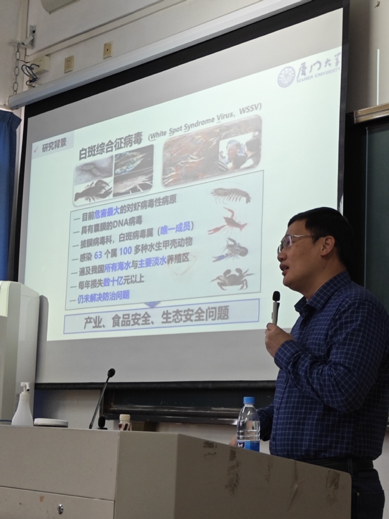 12月6日,我校“桐江讲座教授”、“厦门大学南强教授”刘海鹏教授为我院海洋技术专业师生做“白斑综合征病毒感染与靶向阻断”的专题报告。