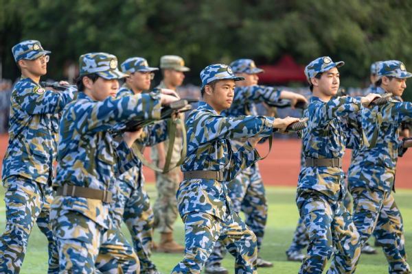 昂首挺胸、精神饱满,井然有序、斗志昂扬。纵使骄阳似火、烈日炎炎,他们依旧迈着有力的步伐,踏出的每一步都干脆利落。身姿挺拔、嗓音嘹亮,臂线整齐、英姿飒爽。纵使汗流浃背、身体困乏,他们依旧挺直脊梁,动作统一。铿锵有力的步伐,响彻云霄的口号,在阳光的照耀下,汗水愈发的晶莹闪烁,折射出数计学子的决心与勇毅。