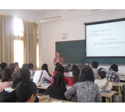 为了上好“示范课”,张万义教授和谢燕鸿老师做足了准备,并结合学科知识制作多媒体课件辅助教学。其中,张万义教授就如何认识英美英语之间的差异与同学们进行探讨,他巧妙引导学生进行口语练习,以加深对英美英语差异的认知;谢燕鸿老师则针对英语阅读中常出现单词看不懂的情况,提出新颖的猜词法,同时也激发了同学们的学习兴趣。听课后还组织全体老师进行评课,大家认为如果能积极参与到听课、评课活动,通过互相交流,互相促进,势必会进一步提高课堂教学质量。