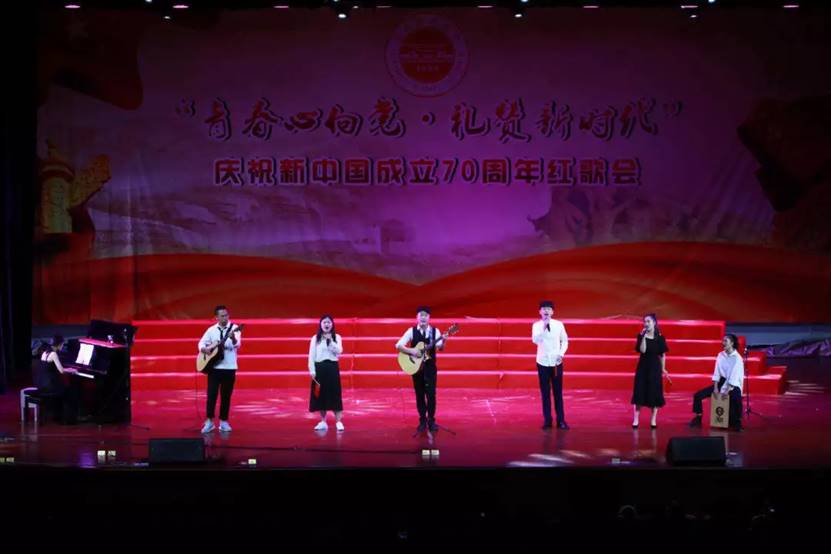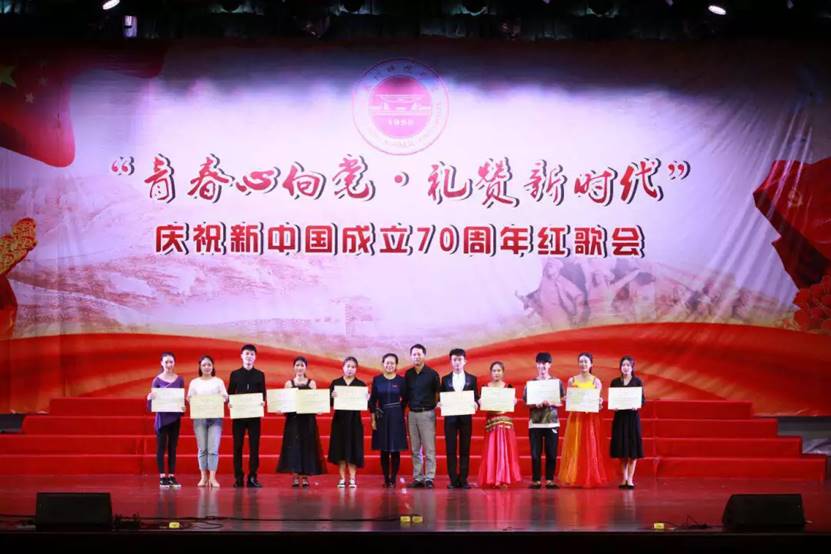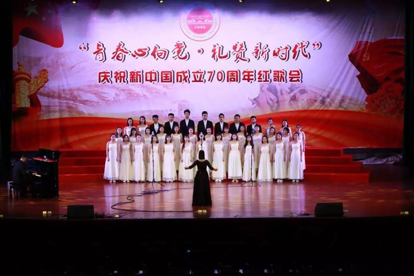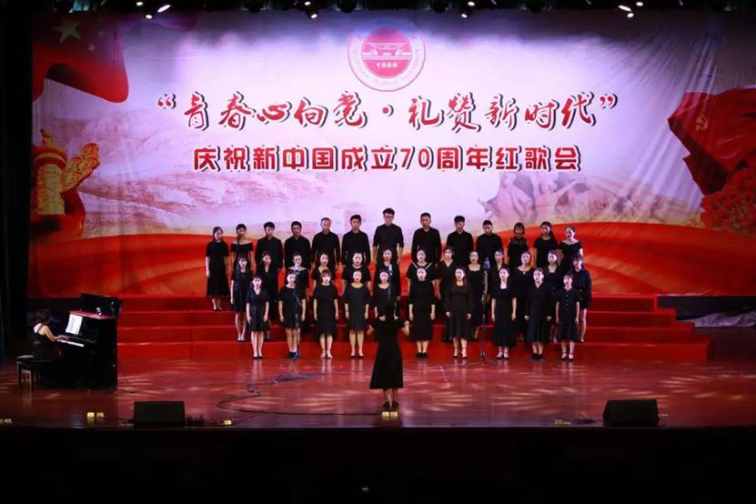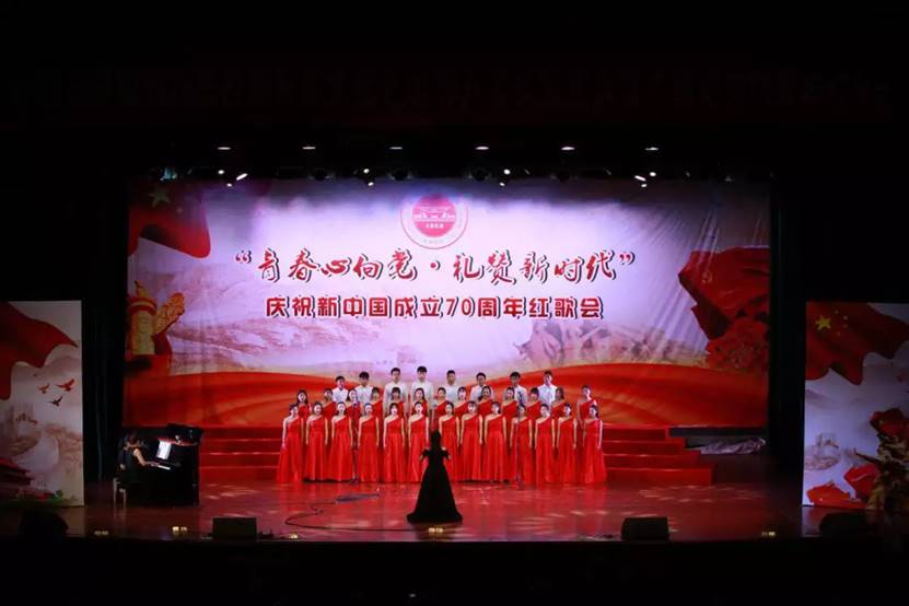 在新中国成立70周年之际,音乐与舞蹈学院的莘莘学子传承革命精神,以合唱、小组唱、歌伴舞等丰富多彩的形式深情演绎红色经典歌曲。《我和我的祖国》、《保卫黄河》、《我的中国心》等一首首充满正气和豪情的红歌唱出了广大师生对祖国的无限崇敬,对党和人民的无限忠诚,对社会主义事业的无限热爱,唱出了激情,唱出了团结,唱出了新时代青年的新风貌,激发了在场师生对祖国、对学校的热爱之情,激励广大师生不忘初心、牢记使命、砥砺前行。