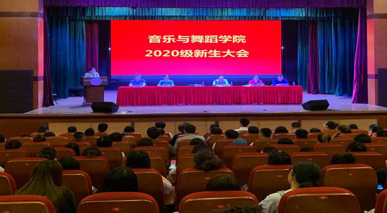 2020年10月5日下午,音乐与舞蹈学院在音乐厅举行2020级新生大会。出席此次大会的有音乐与舞蹈学院院长王丹丹、院党委书记苏国柱、 副书记兼纪委书记胡秋娇及各专业主任、各科室负责人、全体行政人员以及2020级全体研究生、本科生,会议由党委书记苏国柱主持。