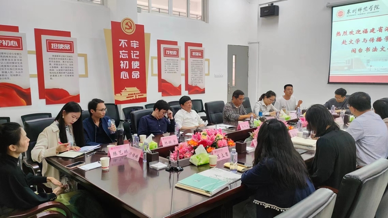 5月11日14:30,福建省海峡文化研究中心王毅霖副主任及其团队莅临我校,与文学与传播学院书法系开展闽台文化交流活动。