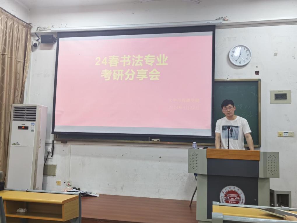为进一步发挥优秀学子的模范带头作用,提高我院学生的升学率,4月22日晚7点,我院书法系在俊秀东楼109教室成功举行了考研经验交流会,书法系全体同学积极参与本次活动。