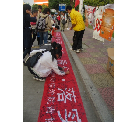 今年12月1日是第23个“世界艾滋病日”,我院青年志愿者协会与泉州疾病防控中心在学校奎生超市前共同举办了预防艾滋病的红丝带宣传活动。