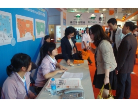 志愿者们耐心细致的为与会客商解答问题