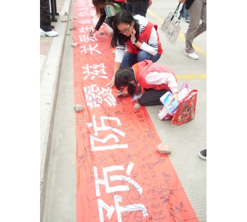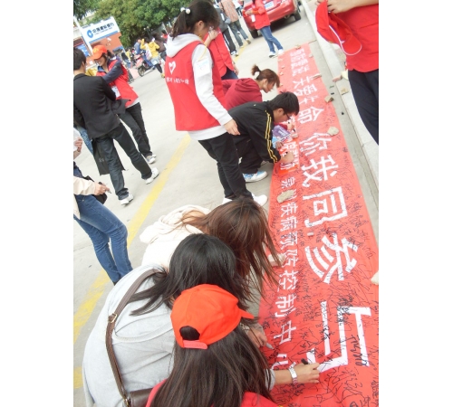 在活动中,志愿者们通过发放预防艾滋病宣传册、讲解相关知识等形式向同学们进行宣传、讲解,吸引了我校众多师生共同参与到“预防艾滋,关爱生命,你我同参与”的横幅签名活动中来。同时,志愿者们还当场讲述有关艾滋病的小故事,让同学们更加深入了解艾滋病人的生活,希望同学们能给予艾滋病人更多的关注。此外,通过翻阅材料,师生们也更加了解艾滋病的传播途径和预防要点,有力地促进了预防艾滋病知识的宣传和普及,唤起了同学们预防艾滋病的意识。志愿者们以实际行动为营造良好的“防艾”氛围及构建和谐校园贡献了力量。