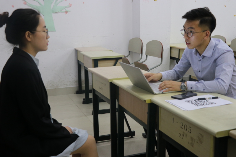 首先,张老师从学而思的成立介绍到近年来的发展,从会场情况看,张老师的介绍对同学们有很强的吸引力。随接着,张老师向同学们讲述了作为一个遍布全国的优质企业,学而思公司的优势在于具有良好的工作环境、优渥的薪资待遇和不定期开展的福利活动等。公司授课的模式为小班授课、在线直播及随时退费三大特色模式,公司每年都会有丰富多彩的团建活动,如生日会等,以及在假期举办的游学活动,即组织老师同学到剑桥大学、耶鲁大学等世界著名高校学习参观。随后,同学们积极地参与问答环节,向老师提出自己的疑问,张兴伟老师也一一为同学们热情解答。宣讲会结束后有意愿的同学们参加了面试,通过的同学们也将进入下一轮的试讲阶段。