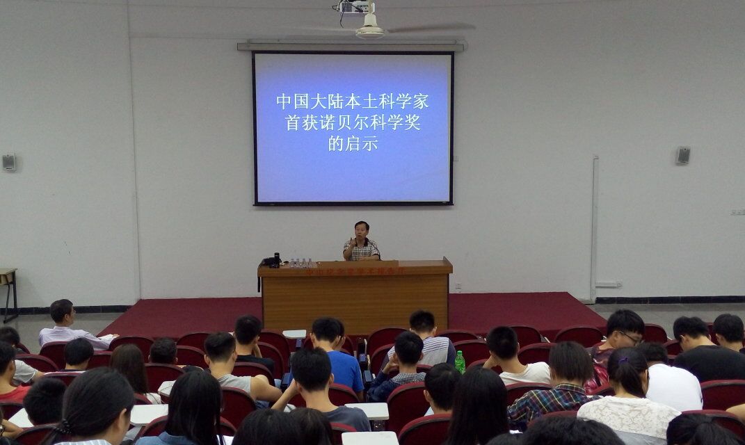 报告会上,黄金钟教授结合中国大陆本土科学家屠呦呦首获诺贝尔科学奖的启示,与在场师生分享了历届华裔诺贝尔获奖者的故事。他以爱因斯坦、居里夫人以及杨振宁、李政道等多位科学家为例讲述科学原创与首创精神的重要性。同时,他结合自己对太阳系自组织进化研究历程,鼓励同学们要善于观察和联想,培养独立思考的能力;要养成多读书、多思考的好习惯,持之以恒;做科研要有恒心、有毅力,甘于坐冷板凳,专注于研究才能得到更大的成就。黄金钟的讲座深入浅出,富有激情,带领大家进一步领略了诺贝尔奖项的意义及科学原创的美。